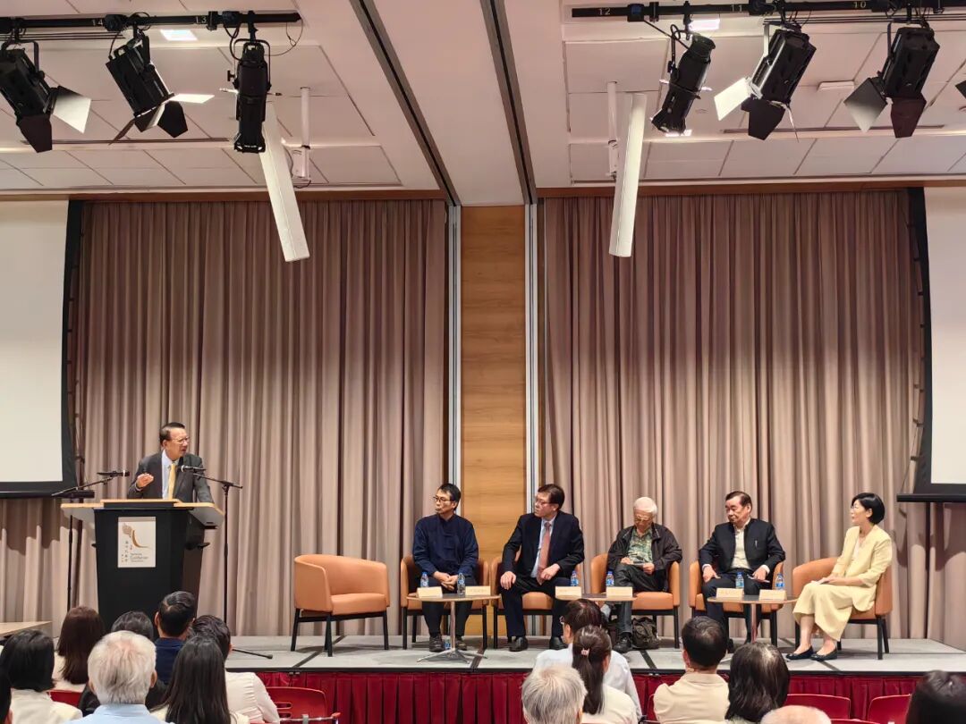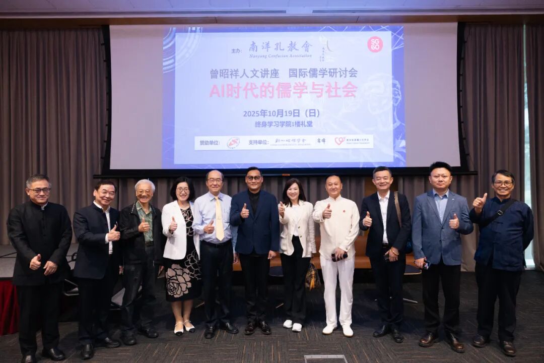 第三,儒学“和而不同”精神可促进文明共融。AI是全球性议题,需跨文化合作。儒家尊重差异、追求和谐的理念,为不同文明携手应对挑战提供了启示。正如南洋社会多元共生的实践所示,儒学从未封闭自守,而是以开放姿态参与人类共同价值的构建。来自中国大陆、台湾及东南亚的儒学学者带来精彩演讲:拉曼大学中华研究院客卿教授、扬州大学文学院特聘教授劳悦强演讲的主题是:AI时代的儒者。孔子第75代孙、福州市文儒书院院长孔海钦演讲的主题是:AI的儒学与社会生活。淡江大学中文系荣誉教授曾昭旭演讲的主题是:在AI挑战下儒学的更精准定位。人工智能语言教育协会会长、新加坡当代艺术研究会会长蔡志礼演讲的主题是:一以贯之,君子不忧不惧 —— 建构以儒学为核心的AI时代伦理框架。至圣孔子基金会陪同孔垂长先生新加坡参访的有孔垂长夫人吴硕茵,至圣孔子基金会执行长陈泰旭、执行委员杨健。